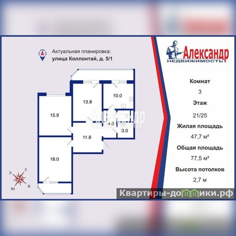 1704798 Просторная, светлая 3-комнатная квартира с панорамным видом на город!<br/><br/>Квартира расположена на 21 этаже, выходит на две стороны дома. Хорошая вентиляция и освещенность. Из окон открывается вид на город, в праздники можно наблюдать салют прямо из дома, а в остальные дни провожать закаты и встречать рассветы!<br/><br/>В квартире две лоджии, во двор и на улицу Коллонтай, вторая лоджия объединяет кухню и комнату и имеет выход с двух помещений, что позволяет использовать ее как место для отдыха и хранения всех необходимых вещей.<br/>Кухонный гарнитур с техникой и встроенный шкаф-купе в коридоре остается новому владельцу.<br/>Теплые полы в коридоре и на кухне.<br/><br/>Дом располагается в одном из лучших мест по инфраструктуре, рядом есть все необходимое - школы и детсады, магазины, аптеки, рестораны, ТРК, спортивные комплексы, поликлиники. <br/>Удобная транспортная доступность как на личном, так и на общественном транспорте, до метро 10 минут пешком.<br/>Огороженный двор, современные детские площадки, три лифта в парадной. <br/>Действующий ухоженный мусоропровод.<br/>Первый этаж занимают коммерческие помещения.<br/>Хорошая Управляющая компания, которая располагается в самом доме.<br/>В доме нет студий, мало квартир на этаже, соседи спокойные, семейные люди.<br/><br/><br/>Квартира в собственности с момента постройки, использовался маткапитал, доли выделены, ипотека погашена, встречная покупка. <br/>Звоните\пишите, отвечу на все вопросы и назначим просмотр квартиры!<br/>