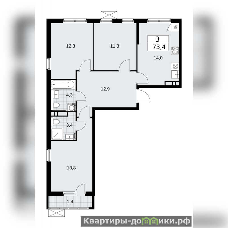 | 11.3 + 12.3 + 13.8 м2 | |