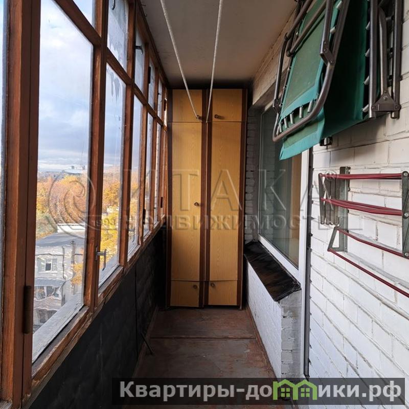 Лоджия длинная, расположена вдоль комнаты и кухни, не узкая, достаточная для любых бытовых нужды: хранения велосипедов, колес, сушки белья. Правда требует в будущем установки стеклопакетов.