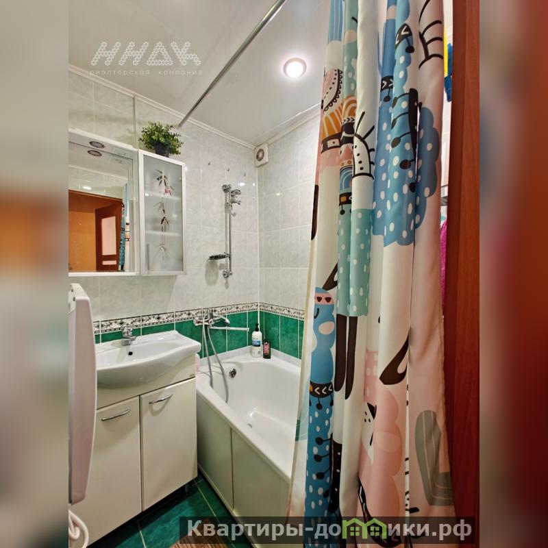 Хорошая планировка: общая площадь без учета балкона 32,4 кв.м., комната 17,3 кв.м., кухня 6 кв.м. , раздельный санузел: ванная 2,1 кв.м., туалет 1,1 кв.м., прихожая 4,6 кв.м., встроенный шкаф 1,3 кв.м., балкон 0,9 кв.м. с выходом из комнаты. Вид во двор.