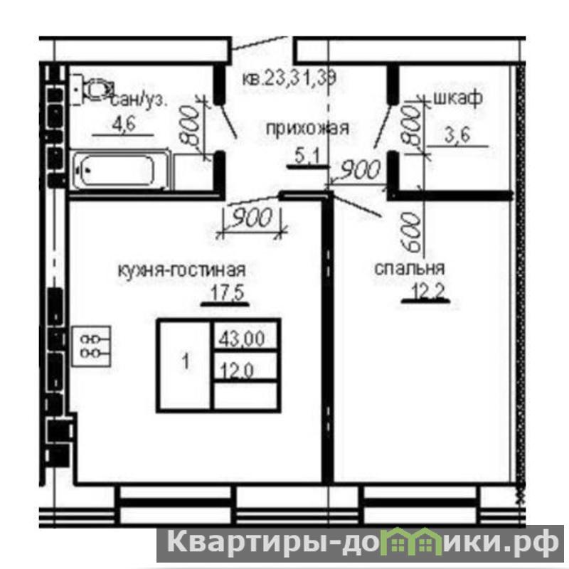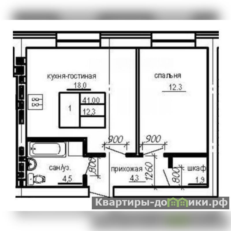 ? В продаже 1комнатная квартира, S – 41 кв.м .