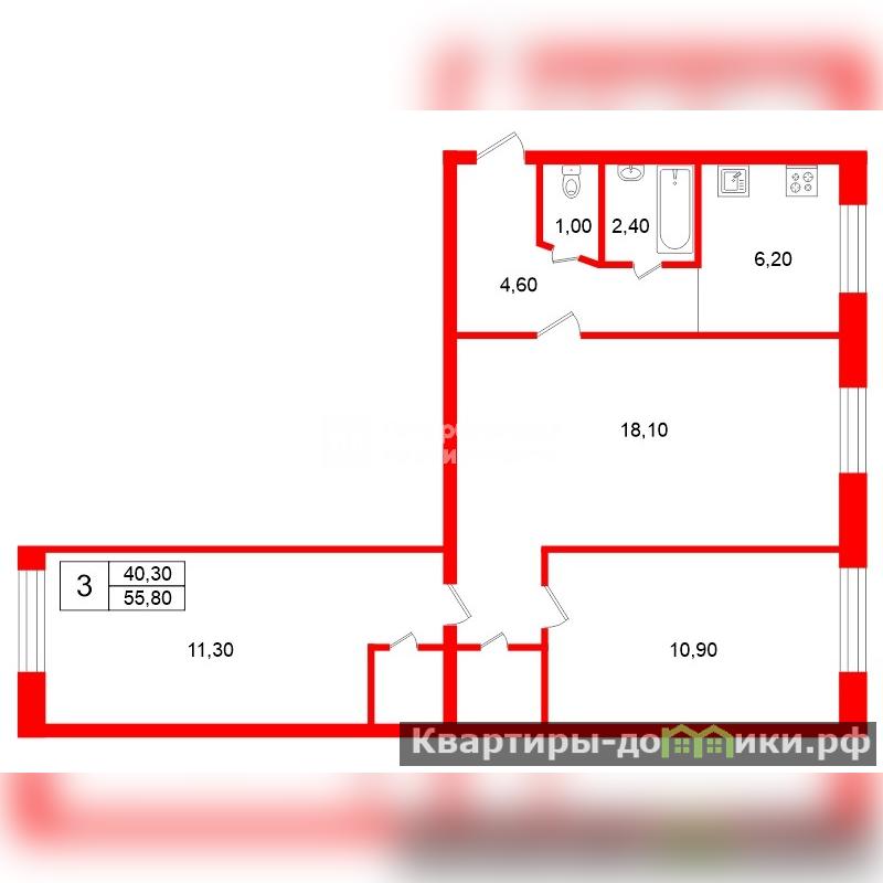 | 18.1 + 10.9 + 11.3 м2 | |