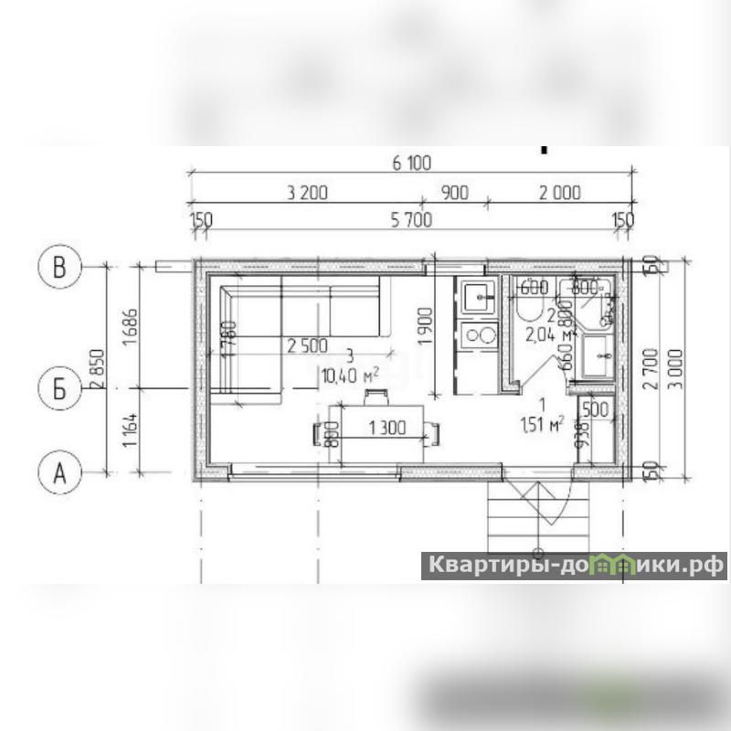 - Планировка: Объединенная кухня, гостиная и спальня, санузел.