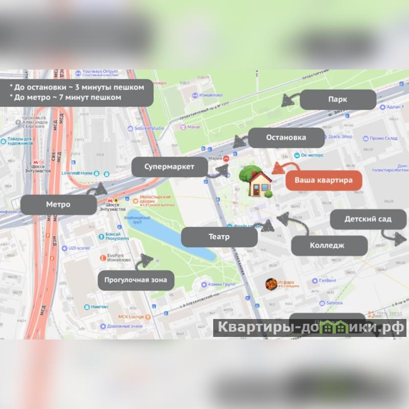 - До станции метро "Шоссе Энтузиастов" (670 метров);