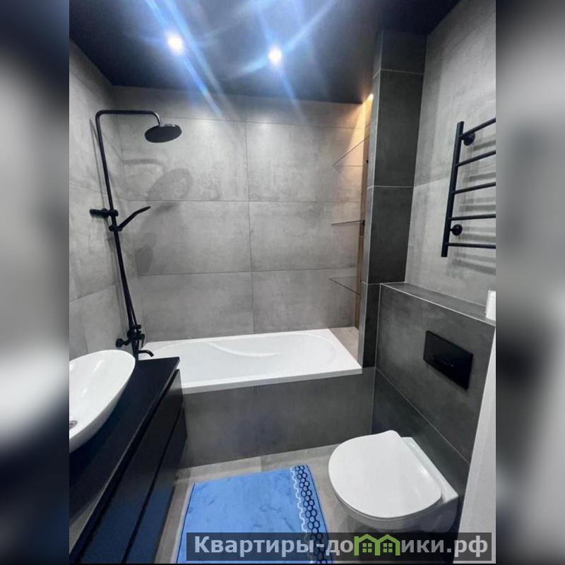 Современный санузел с качественной сантехникой.