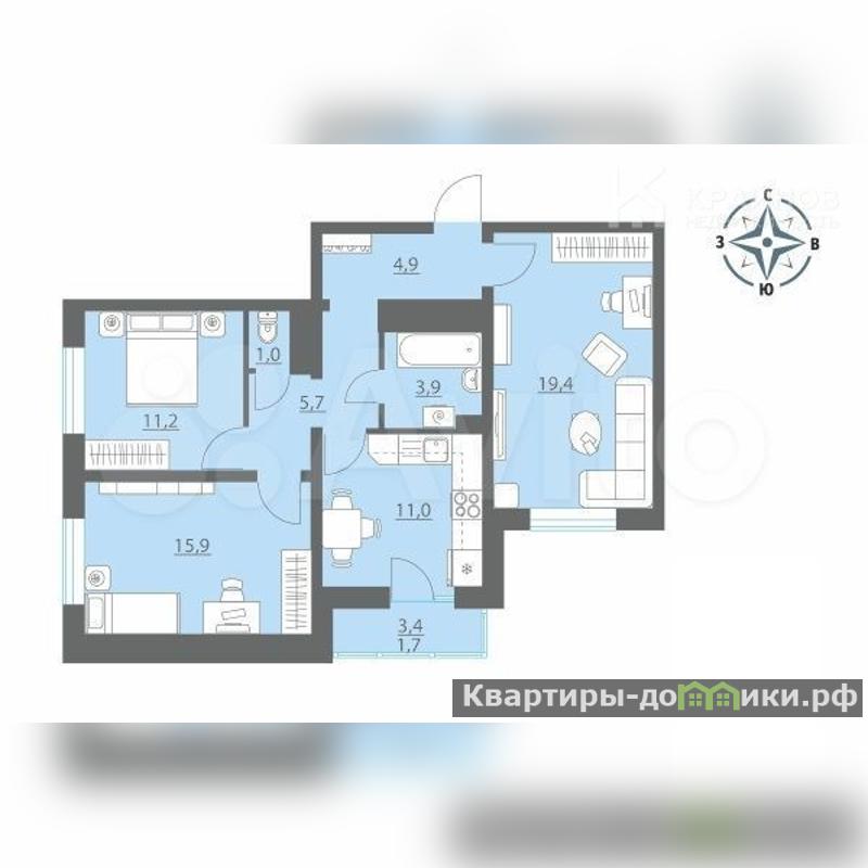 Отдельные комнаты 11.2 кв.м; 15.9 кв.м; 19.4 кв.м.