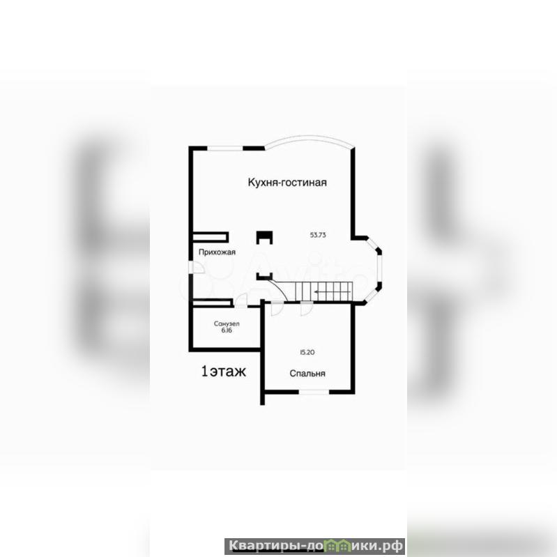 1 этaж - прocтоpную куxню-гостиную 54 м2, жилую комнату, сaнузeл.