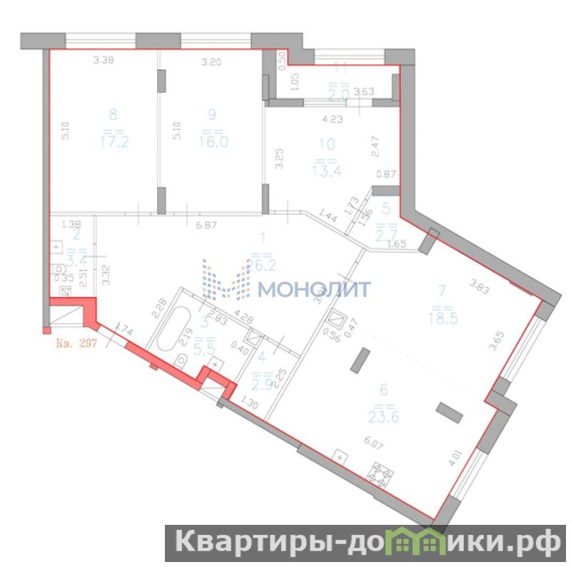 133,2м.кв. Трехкомнатная
