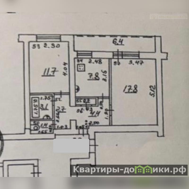 Площадь квартиры с учётом лоджии 55 кв.м. из них площадь жилых комнат 29.5 кв.м., площадь кухни 7.8 кв.м., площадь лоджии 6.4 кв.м.