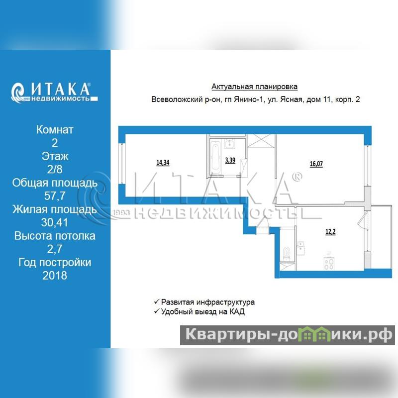 Замечательные комнаты правильной формы - 16,07 кв.м+14,34 кв.м