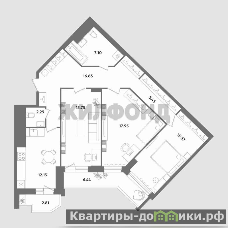 Площадь- 103 кв.м. . Площадь кухни- 12.13 кв.м. . Площадь лоджий- 9.90 кв.м. .