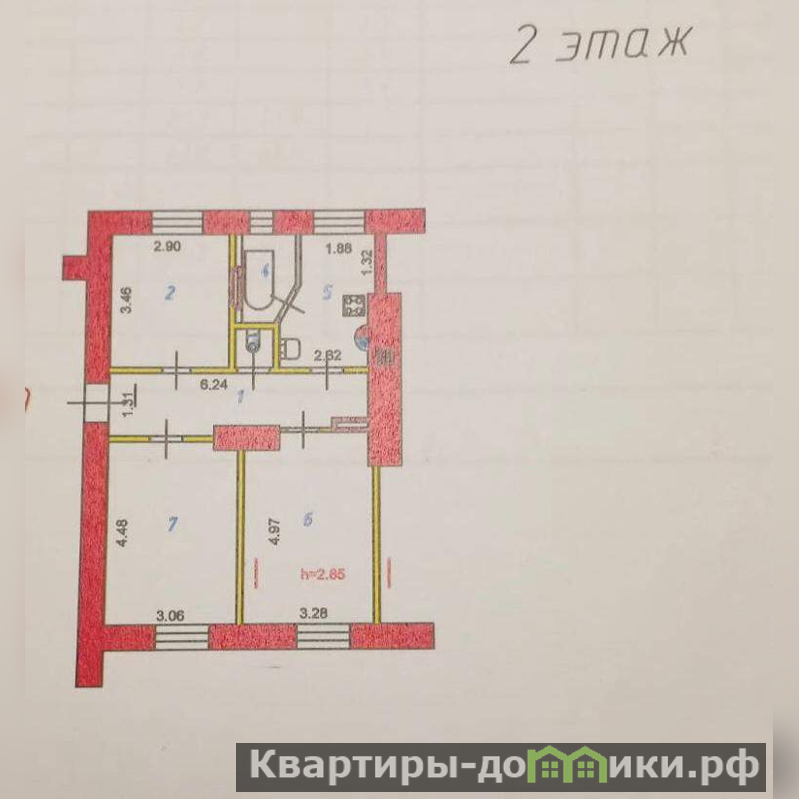 этаж: 2 этаж в 5-этажном кирпичном доме; квартира не угловая, расположенная в середине дома. Окна выходят на обе стороны дома;