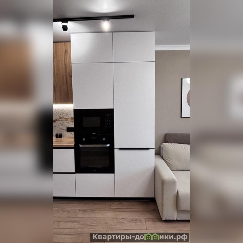 <strong>Кухня-гостиная </strong>– <strong>безусловный центр</strong> этой квартиры. Встроенная мебель и современная техника (индукционная варочная панель, духовой шкаф, посудомоечная машина, холодильник, вытяжка) делают ее не только функциональной, но и стильной. Здесь царит атмосфера, где торжественность гармонично сочетается с домашним уютом.<br />