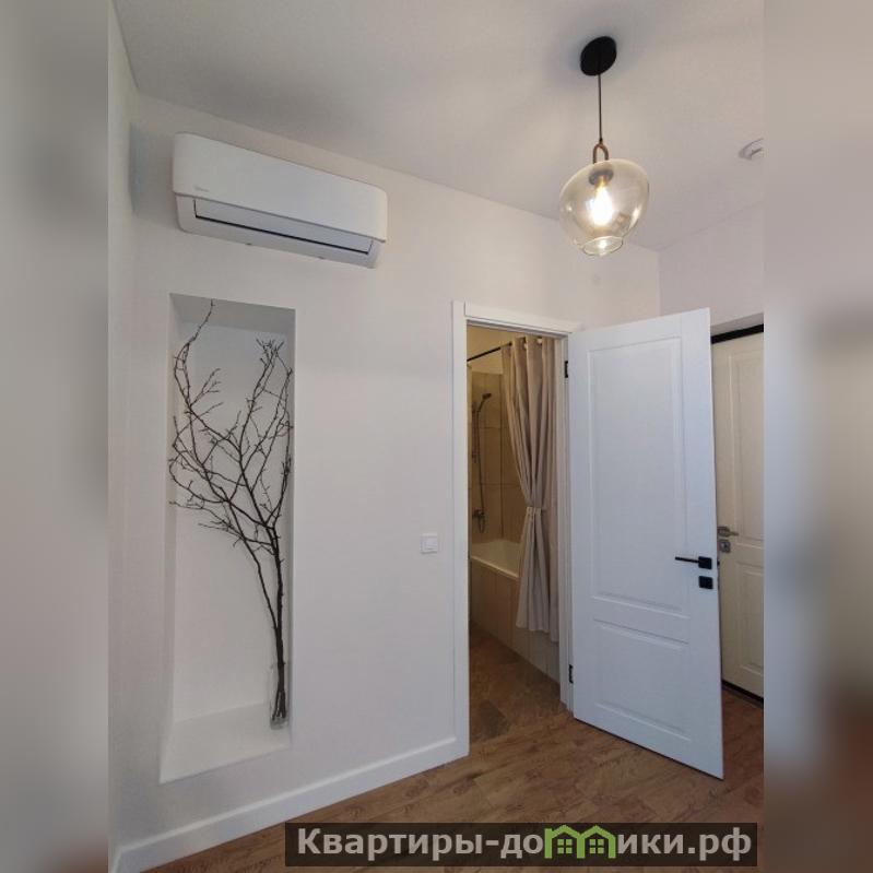 Помещение со свежим ремонтом в стиле минимализм полностью готово к заселению. В комнате создана комфортная зона для отдыха с двухместной кроватью, прикроватным столиком и креслом, а кондиционер обеспечит подходящий микроклимат в любое время года. Ниша в стене с декоративным деревом добавляет интерьеру индивидуальности.