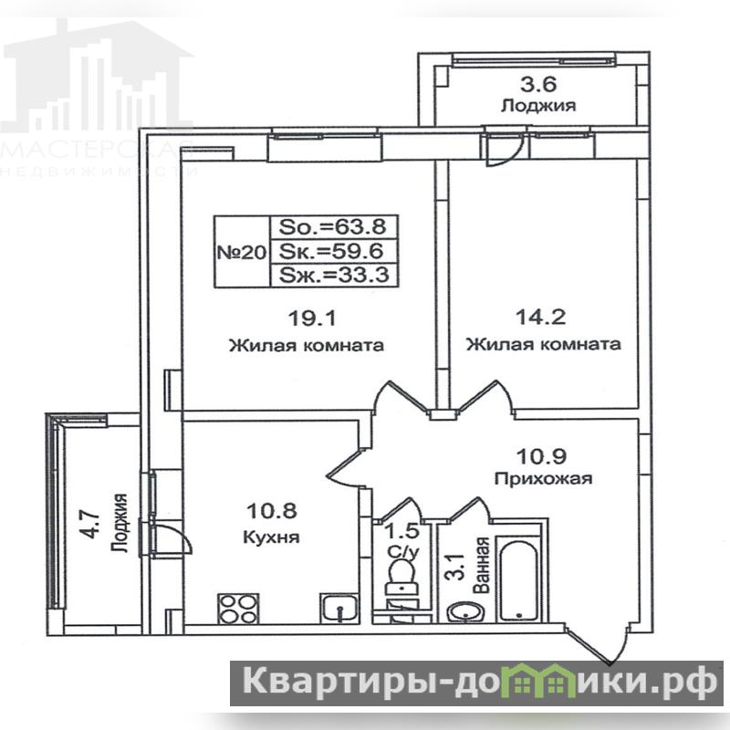 Планировка: Две изолированные комнаты (19.1 и 14.2 м?), кухня 10.8 м?, большая прихожая.