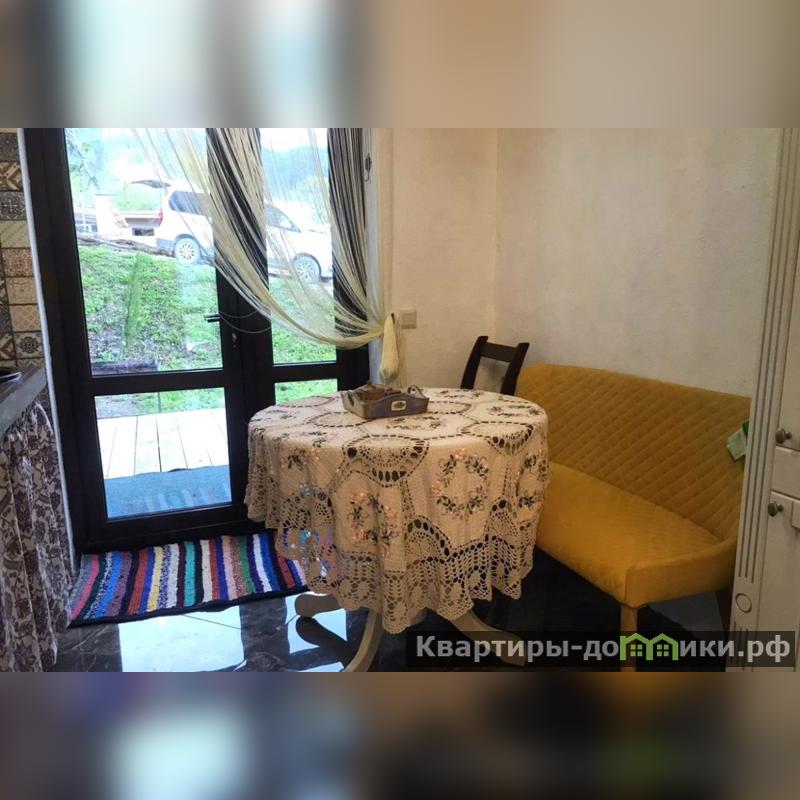 Открытая веранда с садовой мебелью, с видом на лес и горы, мангал, вход на кухню с газовой плитой, вытяжкой, мойкой и всем необходимым для приготовления пищи, круглым столом и диванчиком; прихожая, небольшая гостиная с действующим камином, санузел.