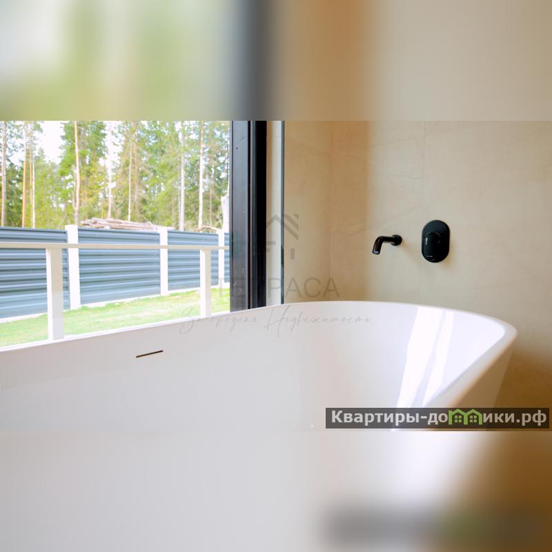 Проект, выполненный в скандинавском стиле с использованием высококачественных материалов. Четкие архитектурные линии, контраст фактур и игра естественного света создают пространство, где каждый элемент несет смысл. Высокие потолки и панорамные окна стирают границу между интерьером и природой, а тёплые полы дарят нежность прикосновения под ногами в любое время года. Ландшафтный дизайн органично вписывает дом в окружающий пейзаж, сохраняя его естественную красоту. И всё это в поселке с развитой инфраструктурой и живописными озёрами поблизости.<br />