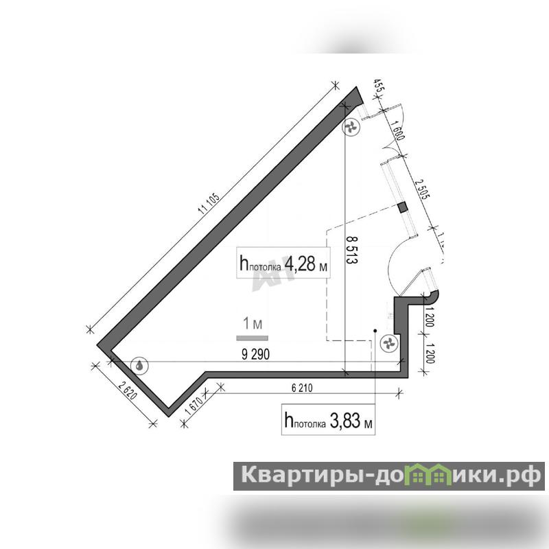 Помещение оснащено тремя панорамными витринами, мокрой точкой и местом под рекламную вывеску, а также потолками высотой около 4 метров.