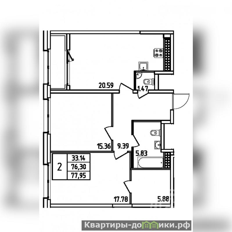 О КВАРТИРЕ: Общая площадь квартиры составляет 77,95 кв.м. Квартира очень светлая и теплая, обладает просторной кухней-гостиной площадью 20,59 кв.м , где удобно разместится столовая зона для семейных ужинов и приёма гостей. Раздельный санузел 5,83+5,88 кв.м, добавляет комфорта в повседневное использование жилого пространства. Наличие лоджии позволяет наслаждаться видами на улицу, создавая дополнительное место для отдыха. Просторный холл - 9,39 кв.м, 2 изолированные комнаты 15,36+17,78 кв.м.