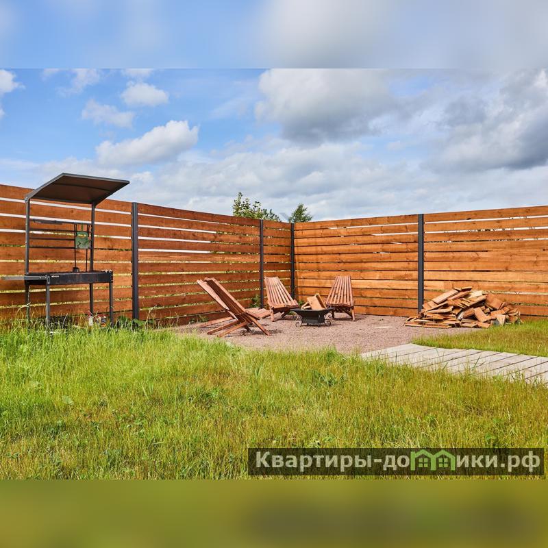 По периметру участок огорожен стильным деревянным забором с металлическими вставками.<br />