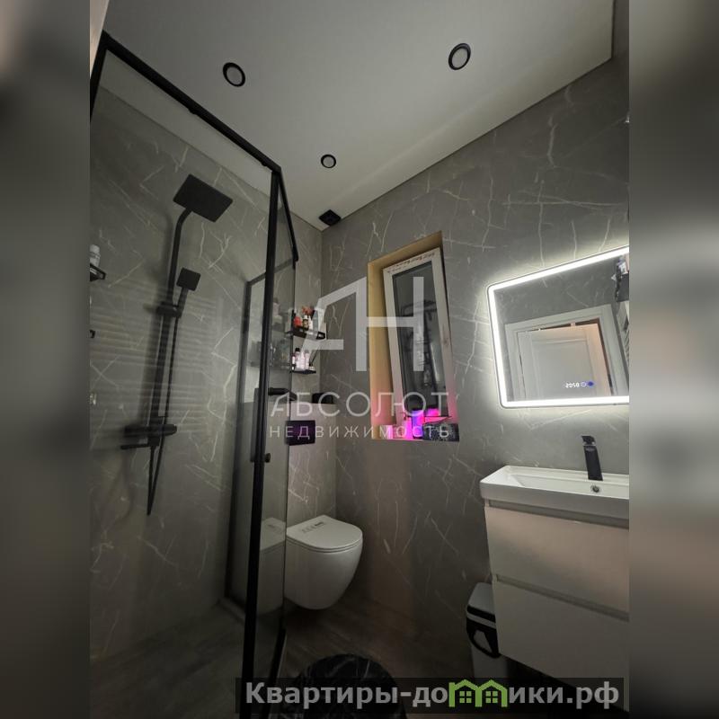 Вас встретит стильное и практичное кварц-виниловое покрытие пола, которое гармонично сочетается с отделкой душевой комнаты, где стены украшает изысканная имитация мрамора, создающая атмосферу спа-зоны. Панорамные пластиковые окна наполняют пространство светом, а элегантные натяжные потолки завершают безупречный образ интерьера.<br />