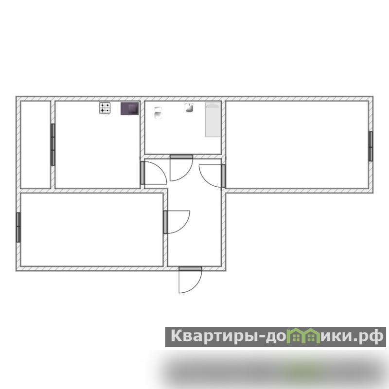 Просторная 2 к.кв. распашонка на 4 этаже из 9-ти, 54,4 кв.м.