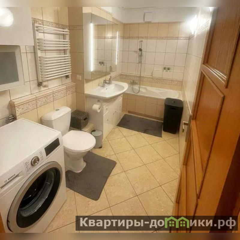 Про санузел: он совмещенный, в нем стиралка, унитаз, змеевик, полноразмерная ванна и умывальник.