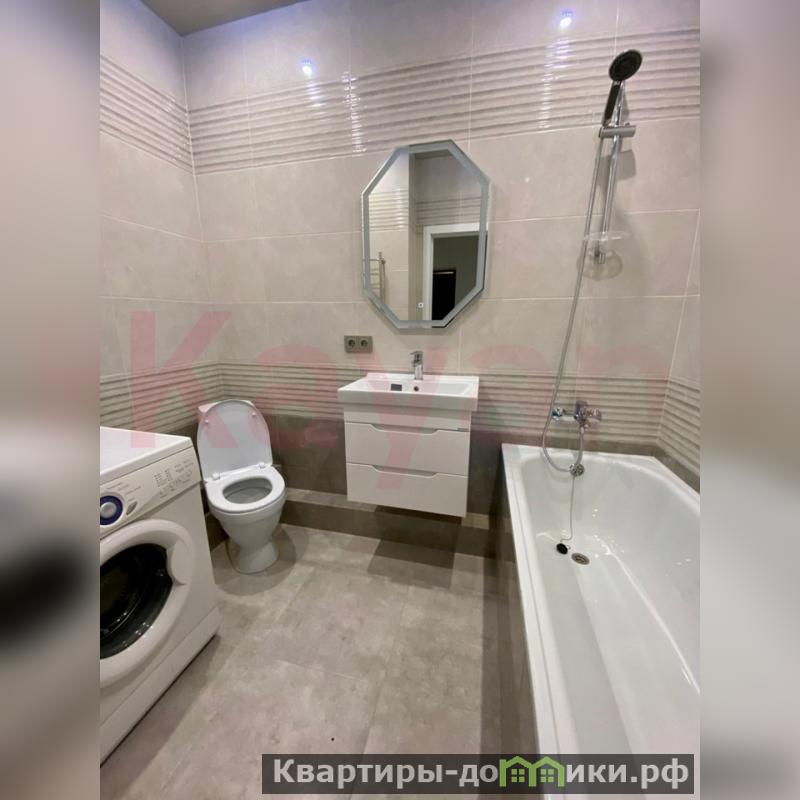 Ванная комната выполнения выполнена из плитки, новая ванна и раковина, установлены новые смесители. <br />