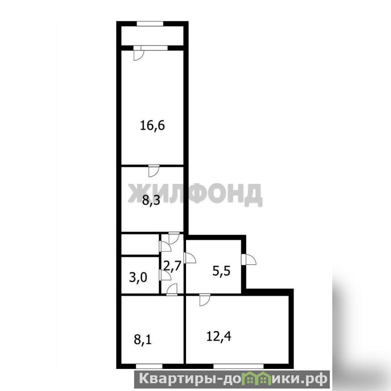 Три жилых комнаты 16,6 кв.м. , 12,4 кв.м. , 8,1 кв.м. Балкон. Раздельный сан. узел.