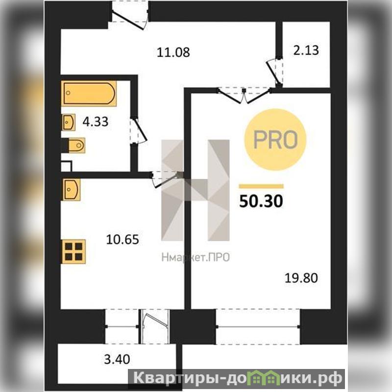 Общая площадь: 50,3 кв.м. Жилая площадь: 19,8 кв.м. Площадь кухни: 10,65 кв.м. Высота потолков составляет 2,68 метра, что добавляет пространству воздуха и света.