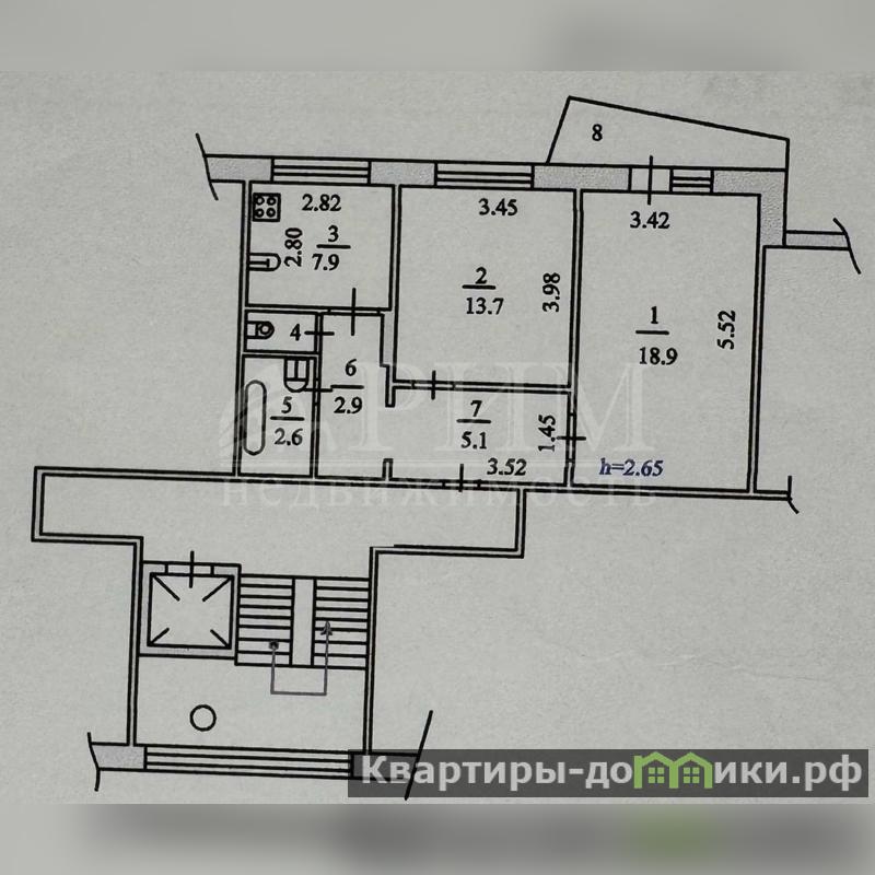 Кухня - 7,9 кв.м. Застекленный балкон 3,3 кв.м.