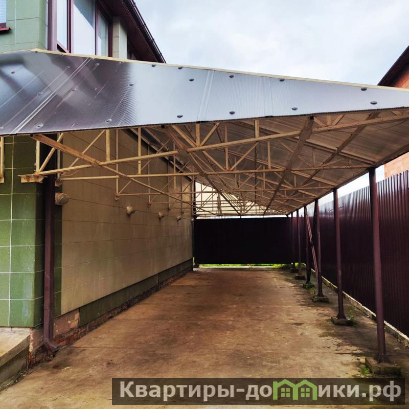 Справа в примыкание к гаражу выполнен металлический навес для 3х машин. Сам гараж на две машины с выходами на участок и в дом, со смотровой ямой 20 м.