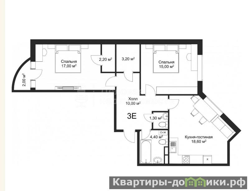 • 2 гардеробные – 2,20/3,20 кв.м.