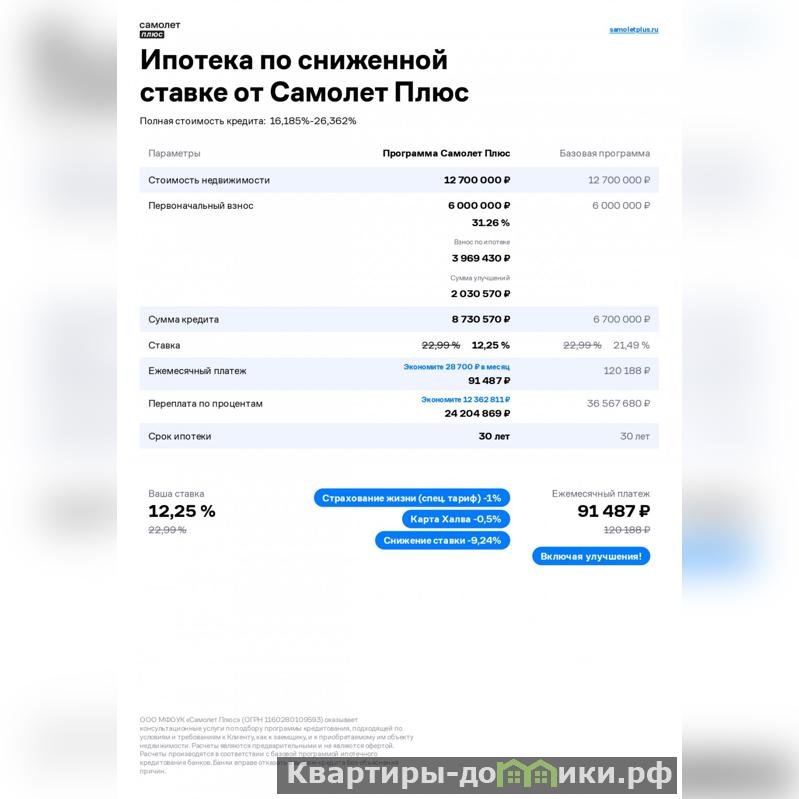 • Ипотека 12,25% на весь срок