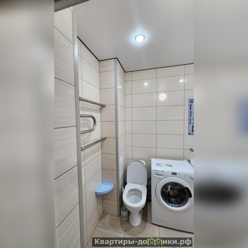 В квартире выполнен ремонт с использованием качественных материалов в спокойных тонах и оттенках. Удобная и практичная в использовании кухня, со столовой зоной. В прихожей большой, вместительный шкаф для хранения вещей. Санузел совмещенный, облицован плиткой, установлена сантехника.