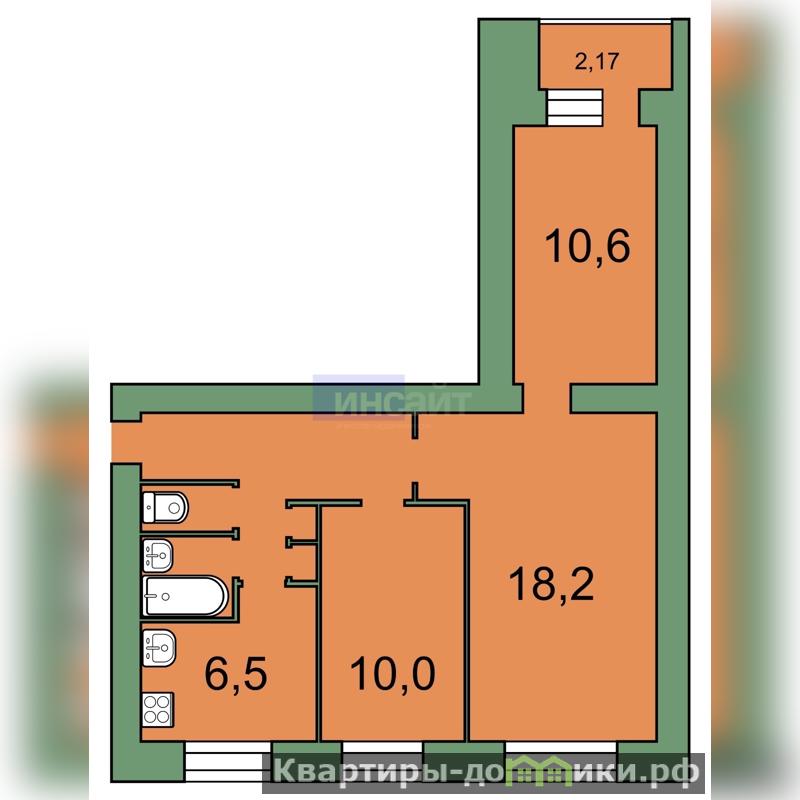 Классическая планировка 3 комнатной квартиры с двумя изолированными комнатами, раздельным сан.узлом