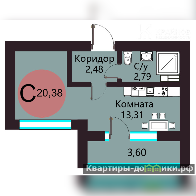 · Умная планировка с нишей под шкаф и просторной лоджией.