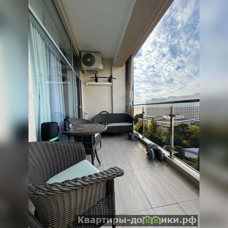 Вся мебель и техника остаются новому собственнику! В квартире высокие потолки, панорамное остекление, боковой вид на море Комплекс находится в золотом треугольнике города Сочи, рядом с одним из самых широких и чистых пляжей с наполненной инфраструктурой.
