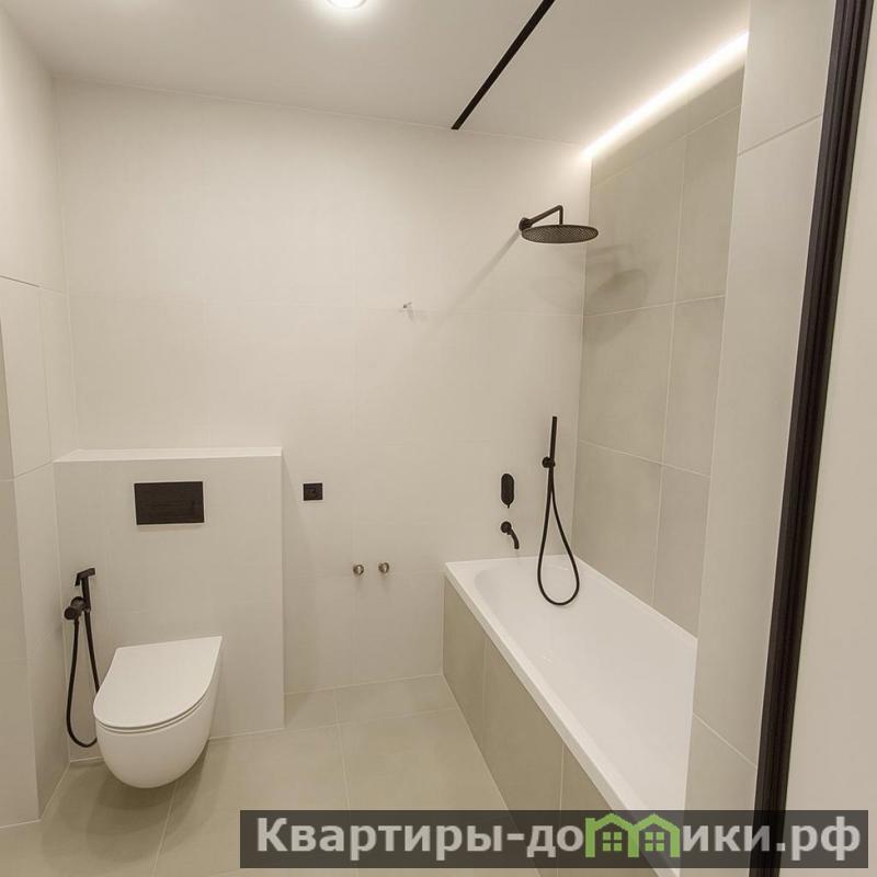 просторный совмещённый санузел с современной сантехникой
