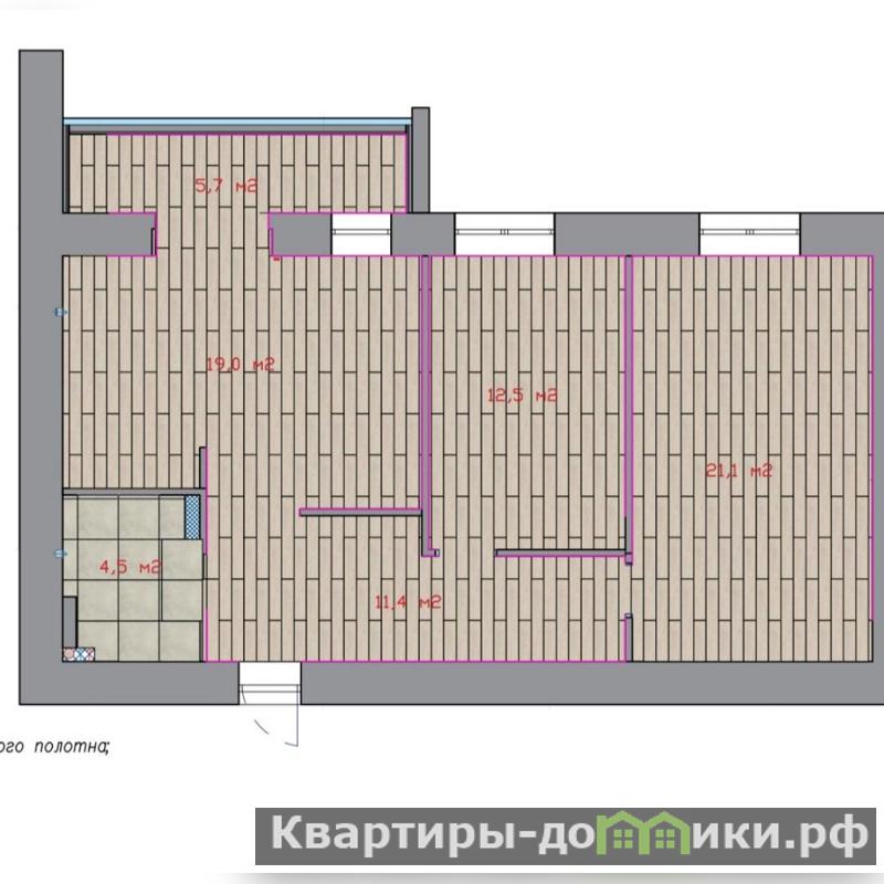 Параметры квартиры: кухня гостиная19 м2, комната12,5 м2, комната21,1 м2. Лоджия5,7 м2, санузел4,5 м2