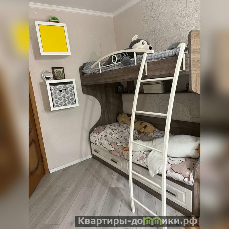 Все так уютно и красиво. Детская комната рассчитана на двоих детей, встроенные шкафчики и встроенный стол тоже в подарок новому владельцу.