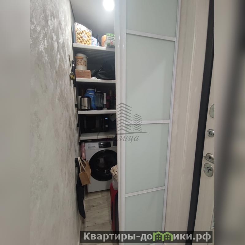Встроенная гардеробная в коридоре с полками и выходом под стиральную машину,