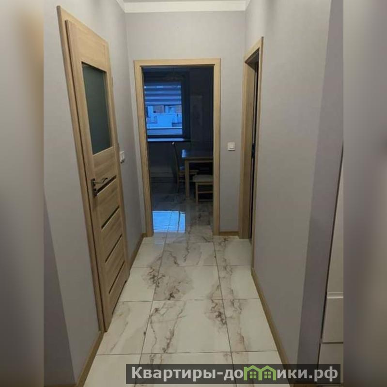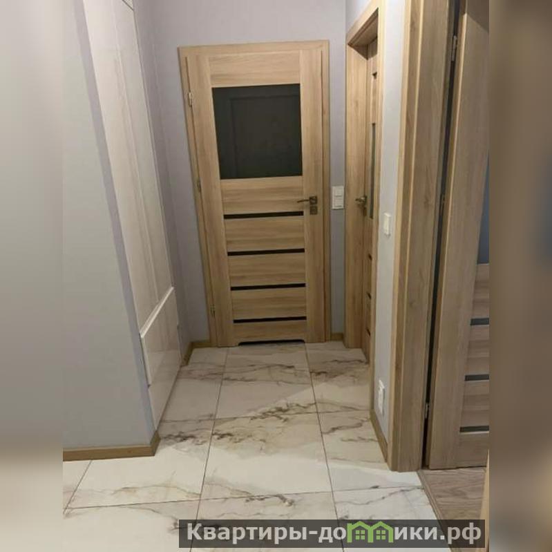 В прихожей - встроенный шкаф-купе от пола до потолка, где удобно хранить верхнюю одежду и повседневные вещи. Светлое оформление и аккуратные двери с матовыми вставками создают ощущение простора уже с порога.