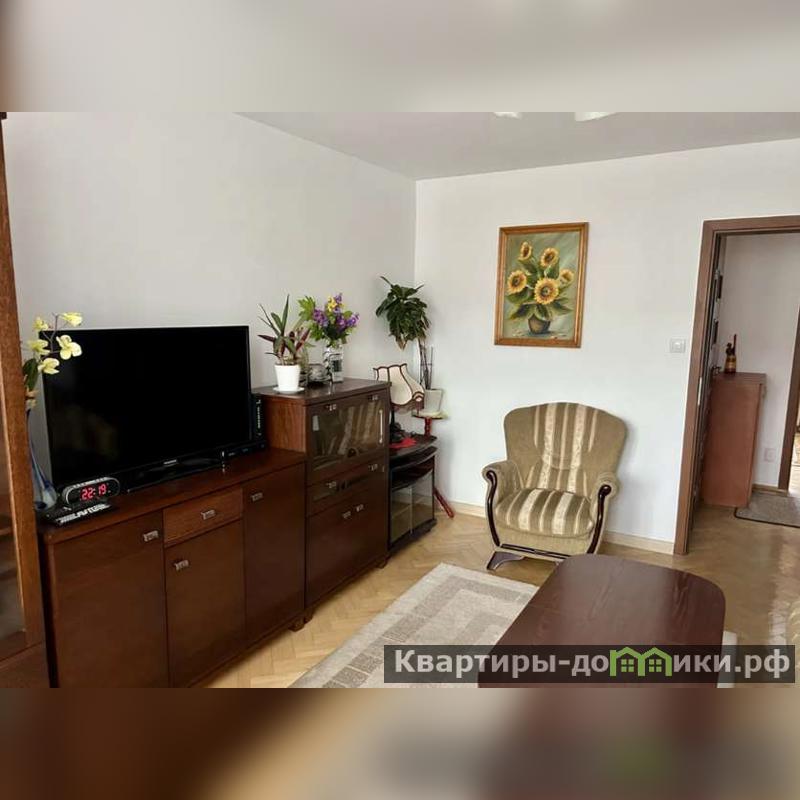 В гостиной установлен телевизор с широким экраном. Напротив — раскладной диван, рядом небольшой столик и картина на стене, создающая приятный акцент. Здесь удобно отдыхать после рабочего дня или проводить вечера в спокойной обстановке.Обе комнаты хорошо отапливаются и оснащены плотными шторами, которые помогут выспаться без лишнего света по утрам.