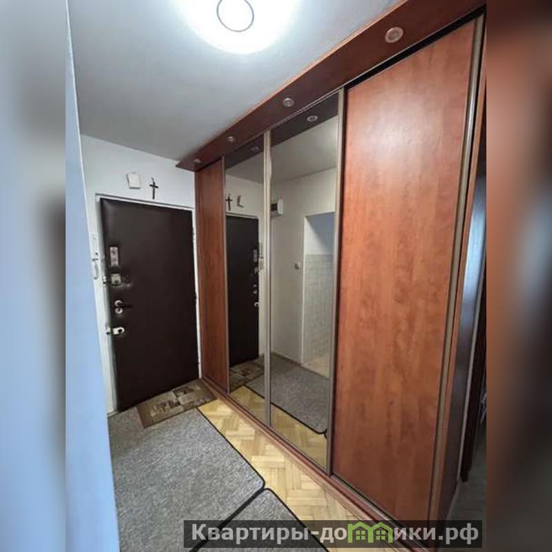 В прихожей предусмотрена стенка для верхней одежды с зеркальными дверцами, что визуально расширяет пространство. Раздвижной механизм помогает рационально использовать площадь.