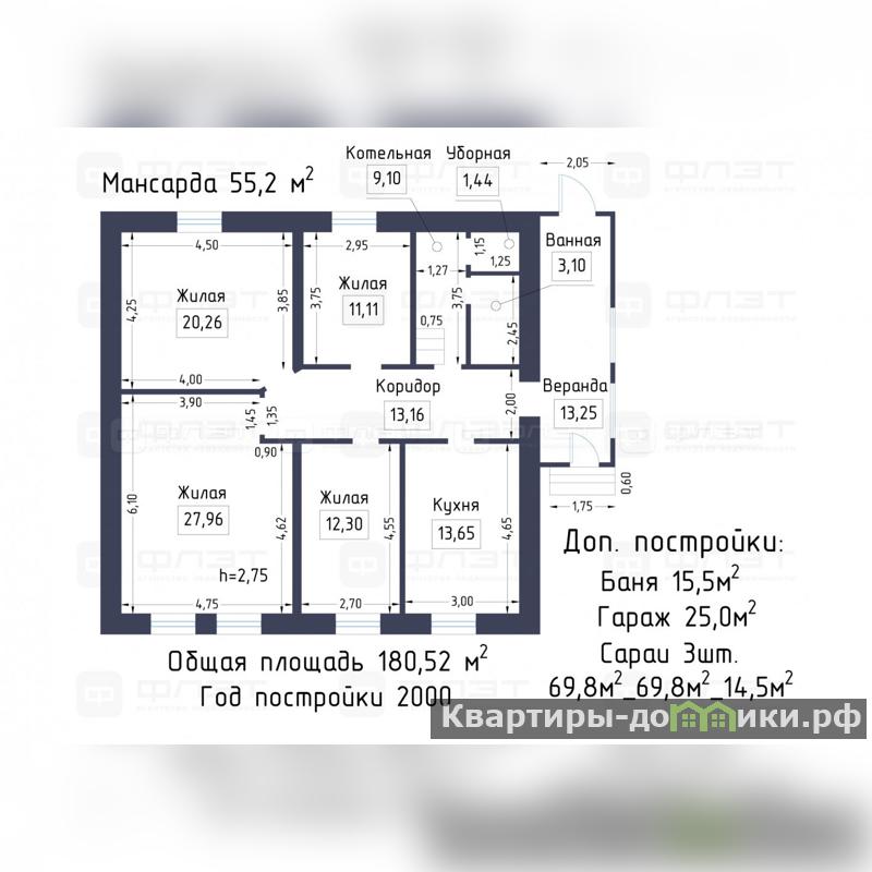 Общая площадь - 180,52 кв.м.