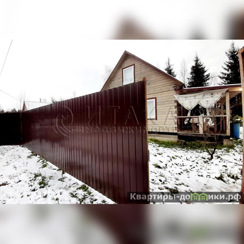 Участок правильной формы, ровный и сухой, огорожен с трех сторон: с двух — сплошной забор, с третьей — сетка рабица. Есть отдельный заезд с воротами для автомобиля и калитка, что удобно для входа и выхода. На участке есть плодовые деревья, кусты и живописные высокие ели. Скважина глубиной 17 метров позволяет при необходимости завести воду в дом.