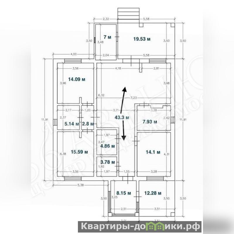 Просторные и светлые помещения — дом площадью 119.7 кв.м, с высокими потолками и продуманной планировкой, создающей ощущение простора и уюта.