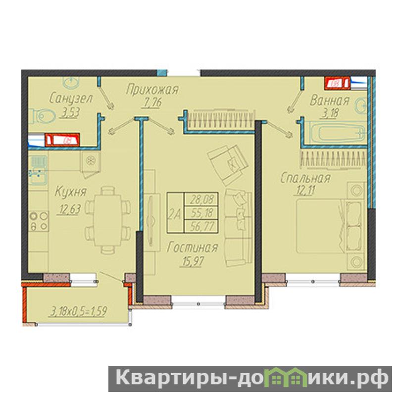 ? 2-комн. квартира, 55,3 кв.м, ЖК Облака (лит. 4), ул. им. Генерала Корнилова, 9, Прикубанский район | 9/9 эт. | кирпич