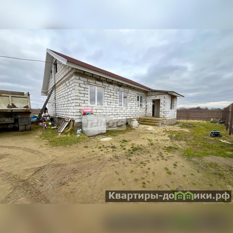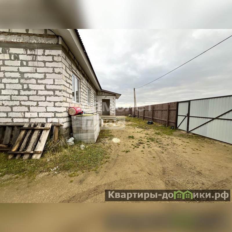 Одноэтажный дом из пеноблоков 2025 года постройки общей площадью 125 кв.м. расположен на участке 22 сотки. Фундамент дома свайно-ленточный, цоколь из бетонных блоков в три ряда, толщина стен (блока) - 30 см., крыша дома - ондулин, окна все ПВХ, перекрытие первого этажа - плиты. В доме полы залиты стяжкой в один уровень толщиной 20 см., стены все выровнены под маяки, в некоторых комнатах стены готовы под обои/покраску, вся проводка разведена по дому (провода ГОСТ). Дом стоит на учёте, можно прописаться и использовать при покупке различные сертификаты, ипотечные программы. В доме крыльцо, прихожая, коридор, совмещённый санузел, просторная кухня - 14.7 кв.м., котельная, три изолированные комнаты по 12.4/12.1/11.8 кв.м., большая гостиная - 34.1 кв.м. Благоустроенный ровный участок огорожен забором по всему периметру дома + имеются ворота для заезда авто на участок, участок правильной формы, сухой, проведено межевание. На участке два хоз.блока, теплица, летний туалет. Все документы готовы для выхода на сделку.